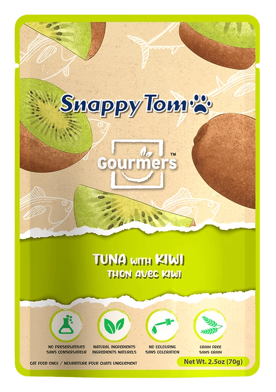 Tuna, Kiwi, Cassia Gum, Carrageenan, Guar Gum, Choline Chloride, Taurine, Vitamin E Supplement, Calcium Pantothenate, Thiamine Mononitrate (Vitamin B1), Zinc Oxide, Ferrous Sulfate, Manganese Sulfate, Vitamin A Supplement, Niacin Supplement (Vitamin B3), Biotin, Pyridoxine Hydrochloride (Vitamin B6), Riboflavin Supplement (Vitamin B2), Vitamin K3 Supplement, Folic Acid, Vitamin D3 Supplement, Sodium Selenate, Potassium Iodide